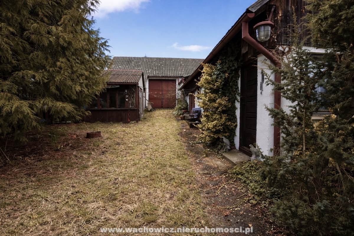Oprócz domu, na działce znajdują się dwa budynki gospodarcze oraz stodoła. Za stodołą istnieje niewielki sad drzew owocowych i pole do uprawy.