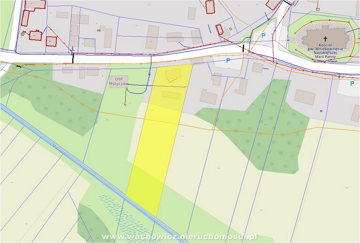 Działka ma numer geodezyjny 463/1. powierzchnię 53 ar, jest ogrodzona w części zabudowanej. Działka dochodzi aż do rzeki Mierzawa.