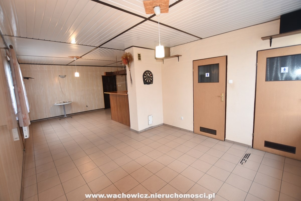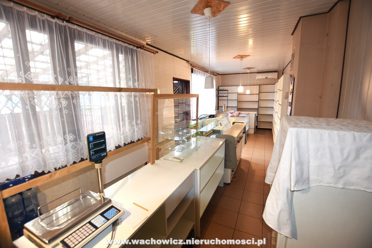 Budynek sklepu ma powierzchnię 130m². Znajduje się w nim klimatyzowane pomieszczenie sklepowe, bar, pomieszczenia socjalne, magazynowe oraz toalety. Jest częściowo podpiwniczony (w piwnicy znajduje się kocioł centralnego ogrzewania, boiler na ciepłą wodę oraz hydrofor). Sklep jest podzielony ściankami, natomiast jest możliwość ich likwidacji, stworzenia dużej wolnej przestrzeni i własnej aranżacji.