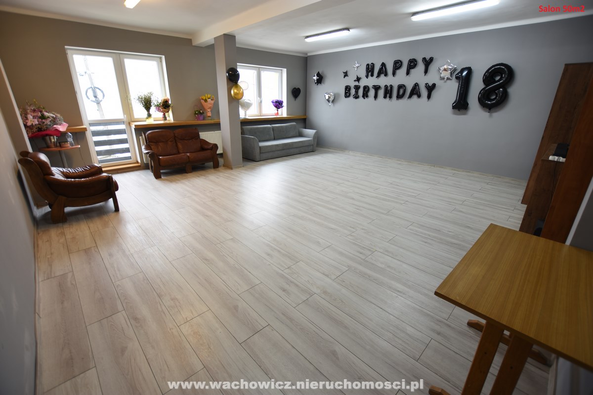 Istnieje możliwość przekształcenia go w lokal użytkowy, podziału na dwa poprzez wydzielenie z salonu osobnego mieszkania o powierzchni około 50m².