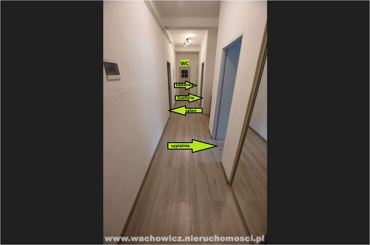 Mieszkanie posiada ekspozycję północ – południe. Od strony południowej znajduje się piękna, wyposażona w sprzęt AGD i meble kuchnia z jadalnią oraz sypialnia wraz dużą szafą w zabudowie. Salon ma ekspozycję północną, z widokiem na ul. Racławicką. Środkową część mieszkania zajmuje przedpokój, łazienka i WC.
