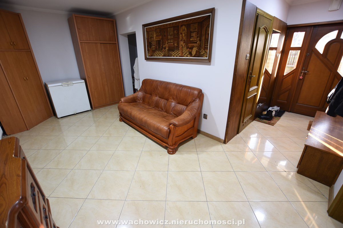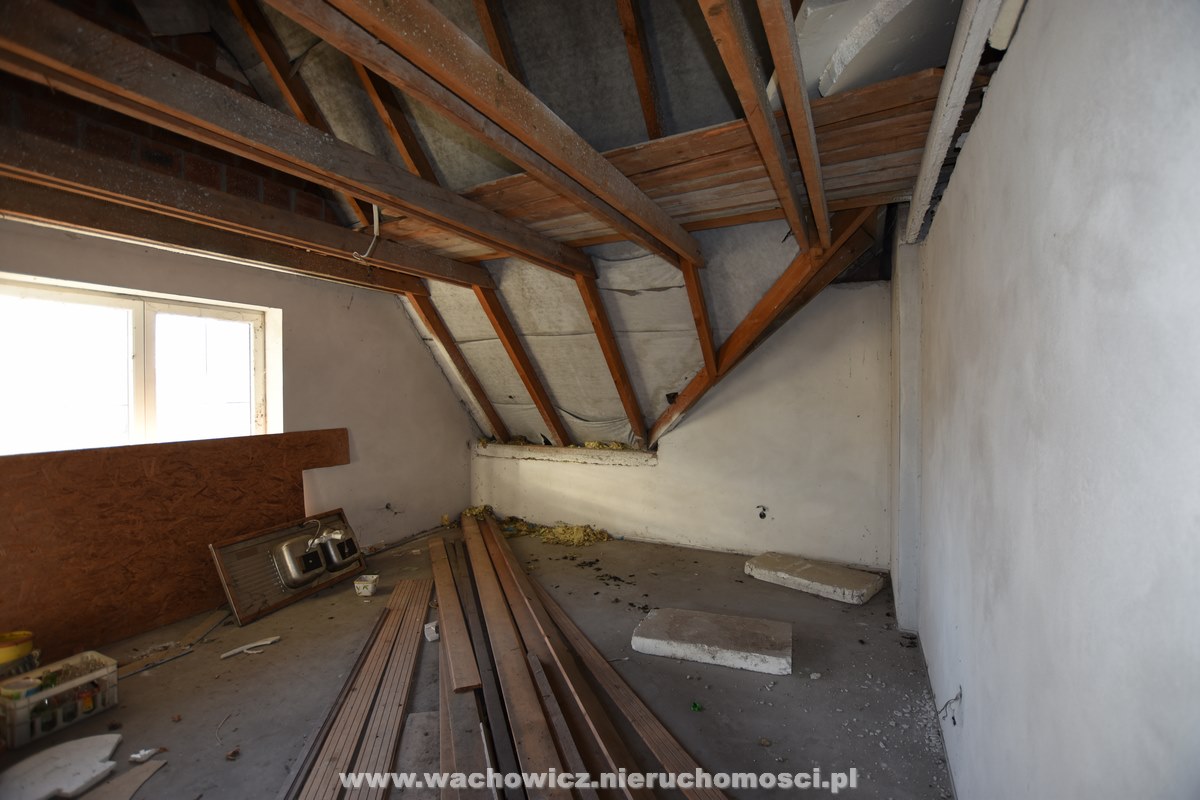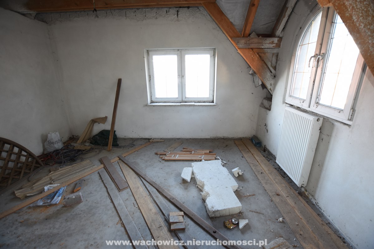 Dom składa się z dwóch części, z dwoma osobnymi wejściami, pierwszej wykończonej i zamieszkałej oraz drugiej będącej w stanie deweloperskim.