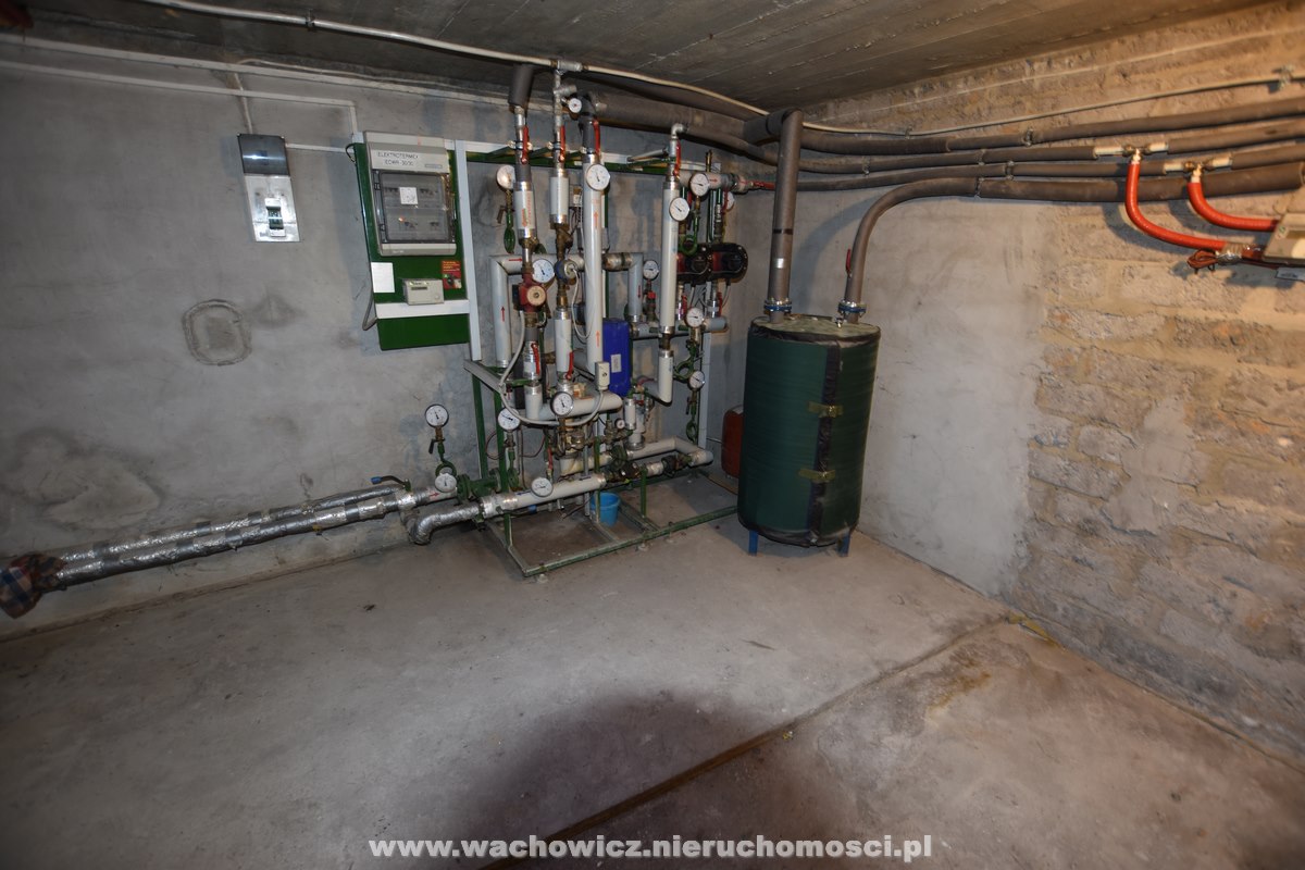 Do domu przyłączony jest garaż jednostanowiskowy z wejściem do piwnicy. W piwnicy znajduje się instalacja ciepłowniczej sieci grzewczej do centralnego ogrzewania i ciepłej wody użytkowej.